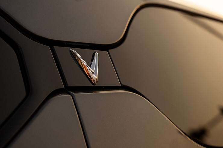 Đuôi xe vẫn tiếp tục xuất hiện những đường nét thiết kế hình học, có phần gân guốc giúp hoàn chỉnh vẻ đẹp cơ bắp cho VinFast VF 9. Cùng với đó là cụm đèn hậu được kết nối với nhau bởi dải LED tạo hình chữ V thanh mảnh, ôm trọn logo thương hiệu. Cánh gió thể thao tích hợp đèn phanh, ăng-ten vây cá đồng màu thân xe.