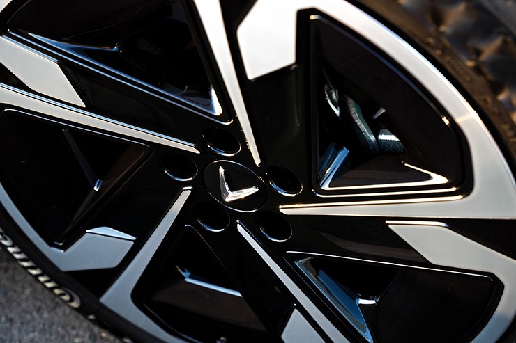 Vô-lăng dạng D-cut với khu vực trung tâm hình chữ nhật bo tròn, ôm trọn logo thương hiệu. Phía sau vô-lăng không có đồng hồ hiển thị thông tin, tính năng này đã được tích hợp vào màn hình trung tâm. Cần số dạng nút bấm giống như thiết kế thường thấy trên các mẫu siêu xe.